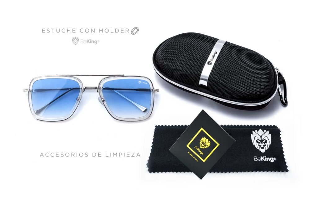 Luxury Blue Sky combina elegancia y exclusividad en un diseño premium. Sus lentes azules con gradiente, junto al armazón plateado y el marco transparente y lente en tonos celestes y azules, reflejan un estilo refinado inspirado en la sofisticación de Tony Stark. Estas gafas son el accesorio exquisito para quienes buscan destacar con un toque de distinción y modernidad. Diseño exclusivo BeKing® Luxury.